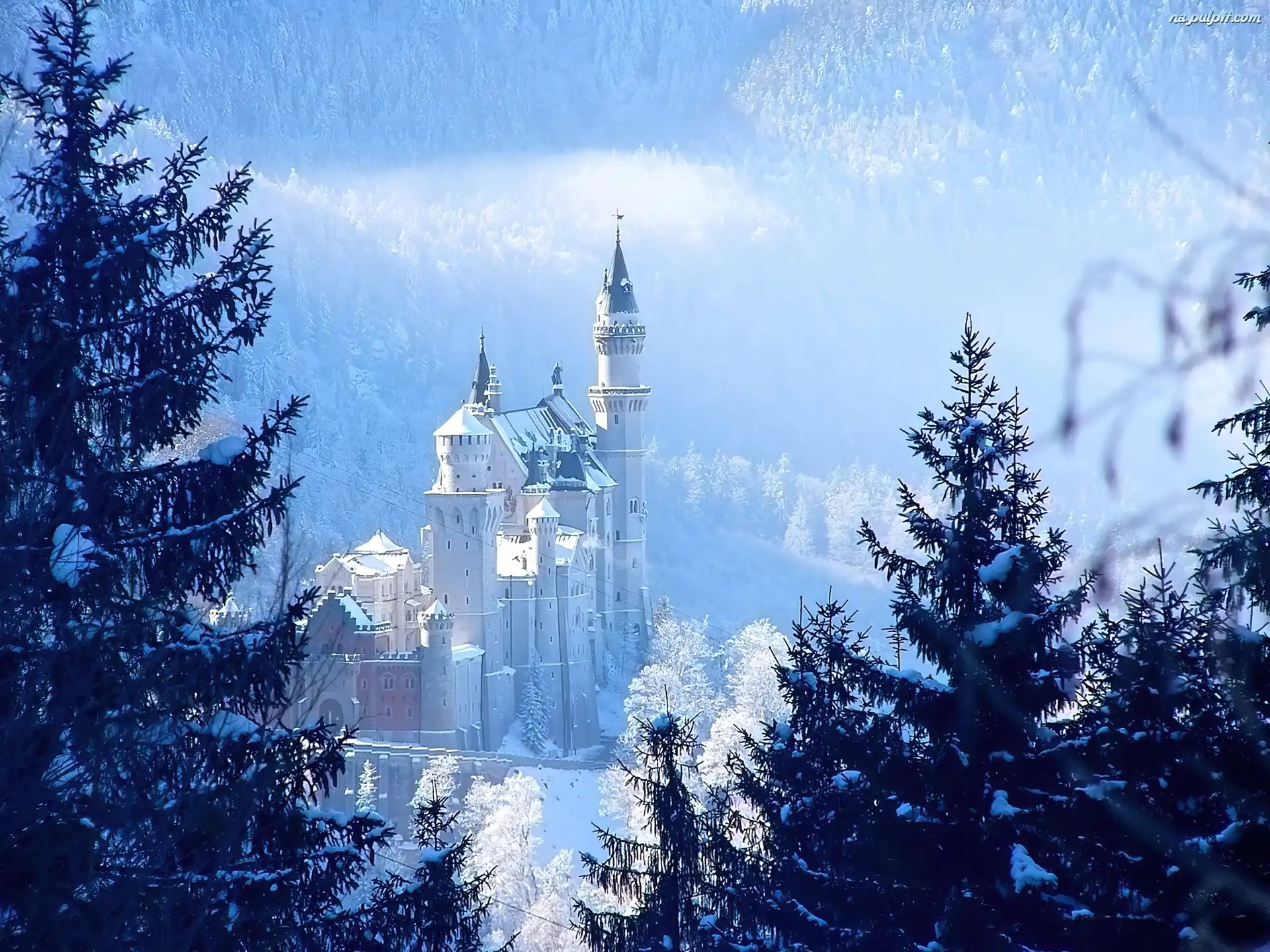 Zima, Neuschwanstein, Zamek, Drzewa