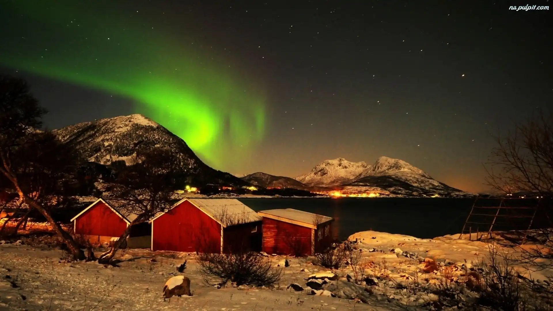 Zima, Góry, Polarna, Zorza, Dom Na Pulpit