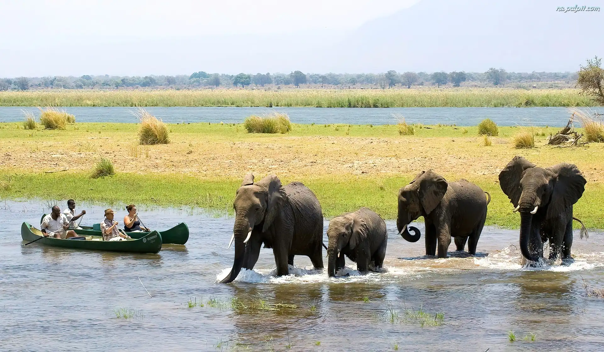 Zimbabwe, Rzeka, Słonie, Łodzie