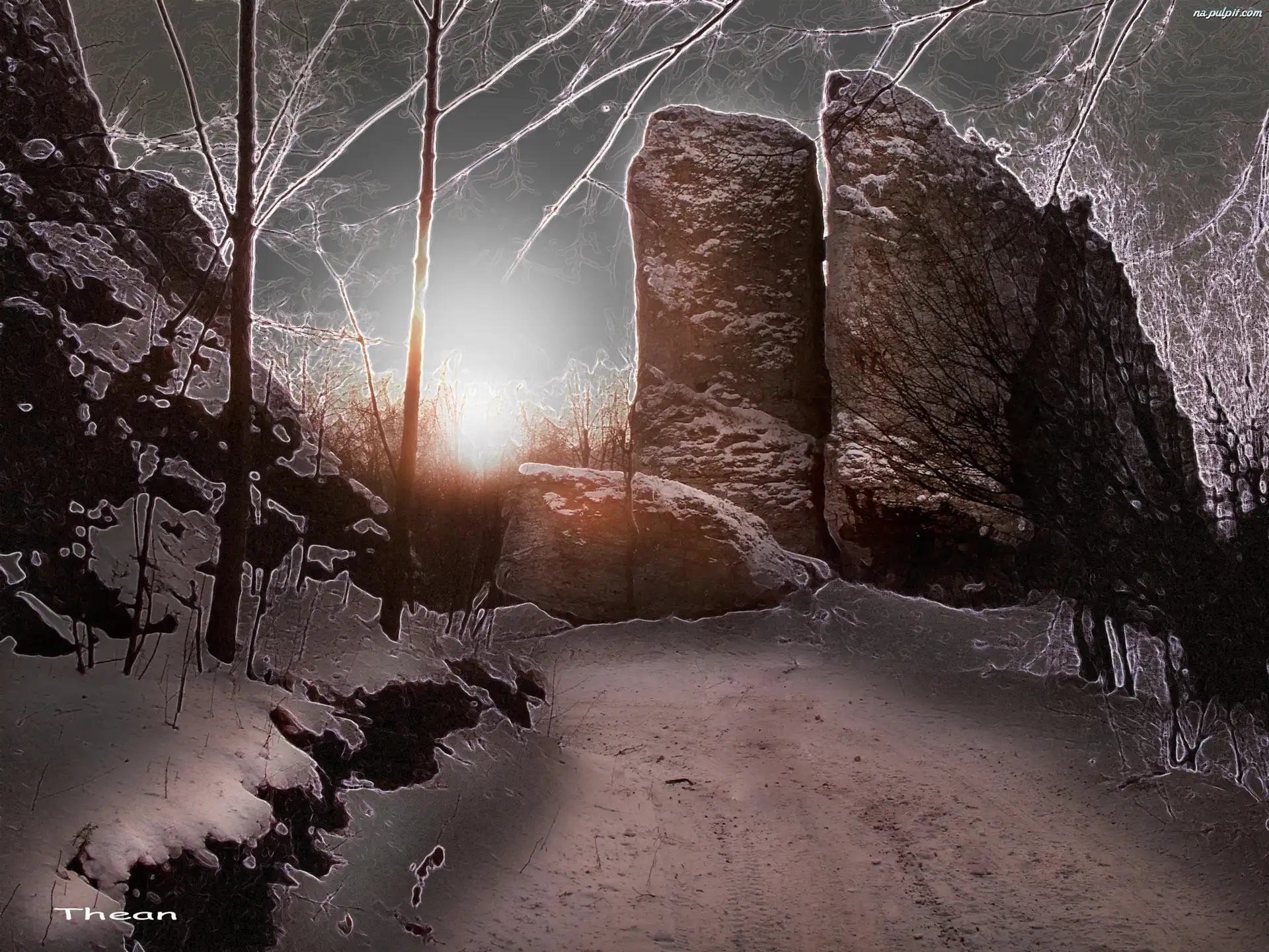 Śnieg, Widok, Zimowy, Skały Na Pulpit
