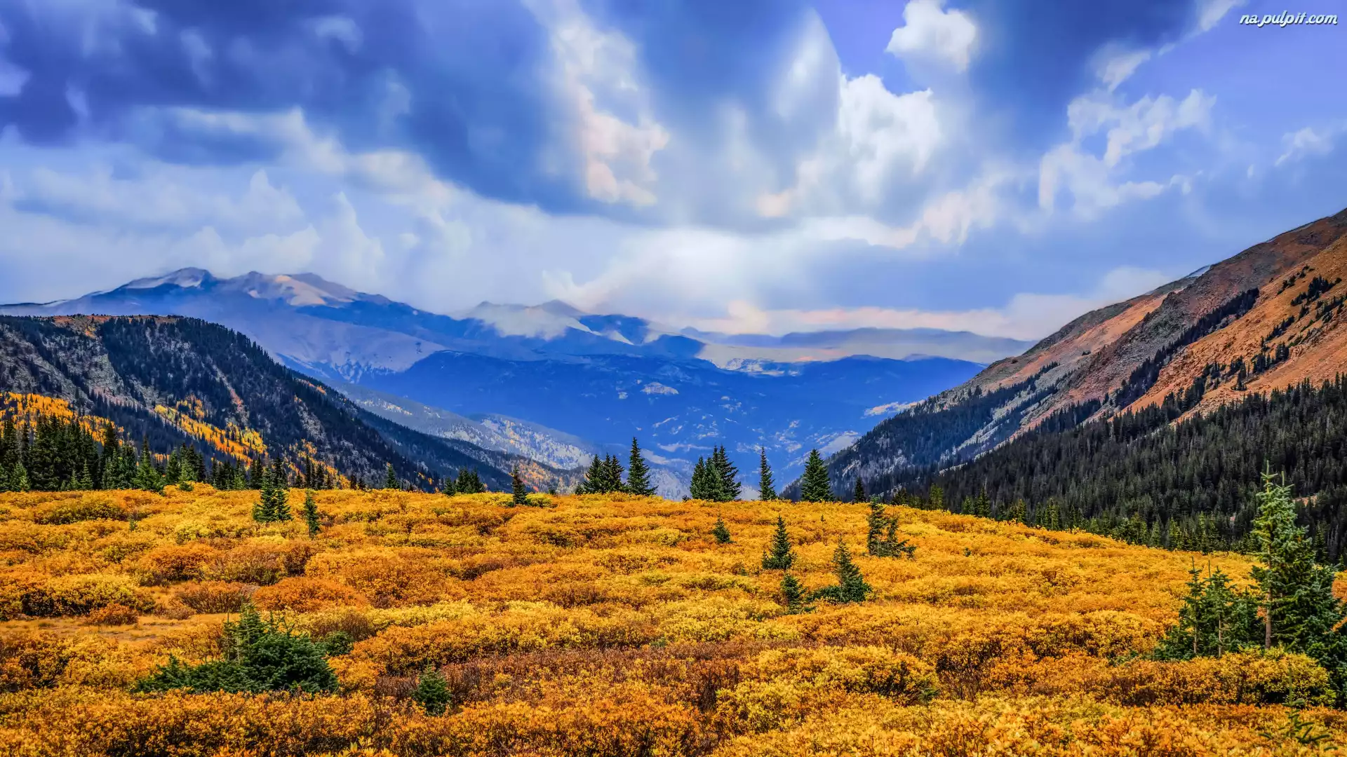 Niebo, Chmury, Kolorado, Góry, Polana, Guanella Pass Summit, Stany Zjednoczone, Drzewa, Las Na Pulpit |