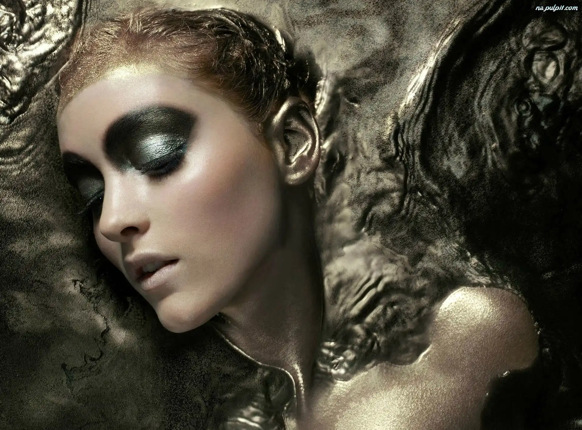Złocenie, Makijaż, Kobieta, Charakteryzacja