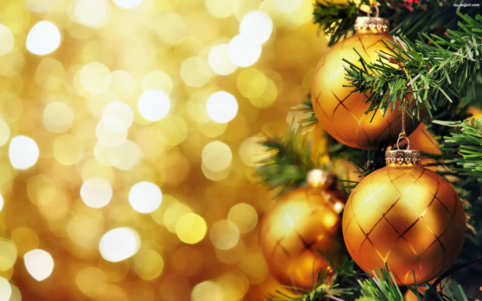 Święta, Bombki, Złote, Choinka Na Pulpit