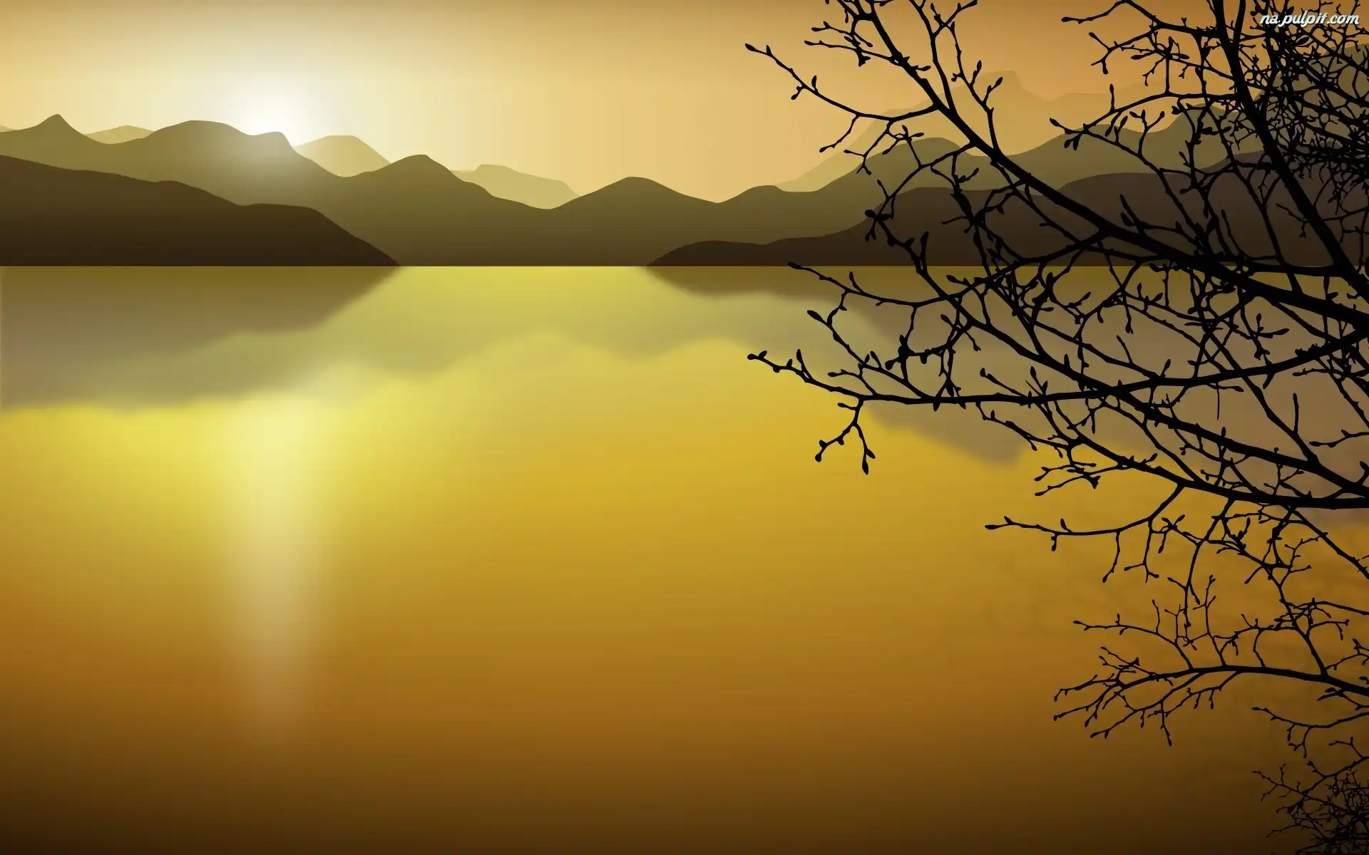 Złoto, Blask, Jezioro, Gałęzie Na Pulpit