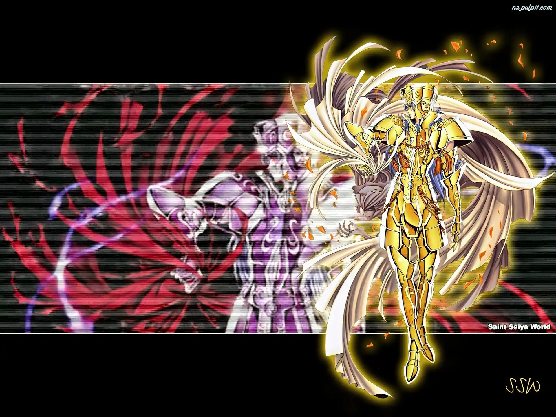 złoto, postać, Saint Seiya, twarze Na Pulpit
