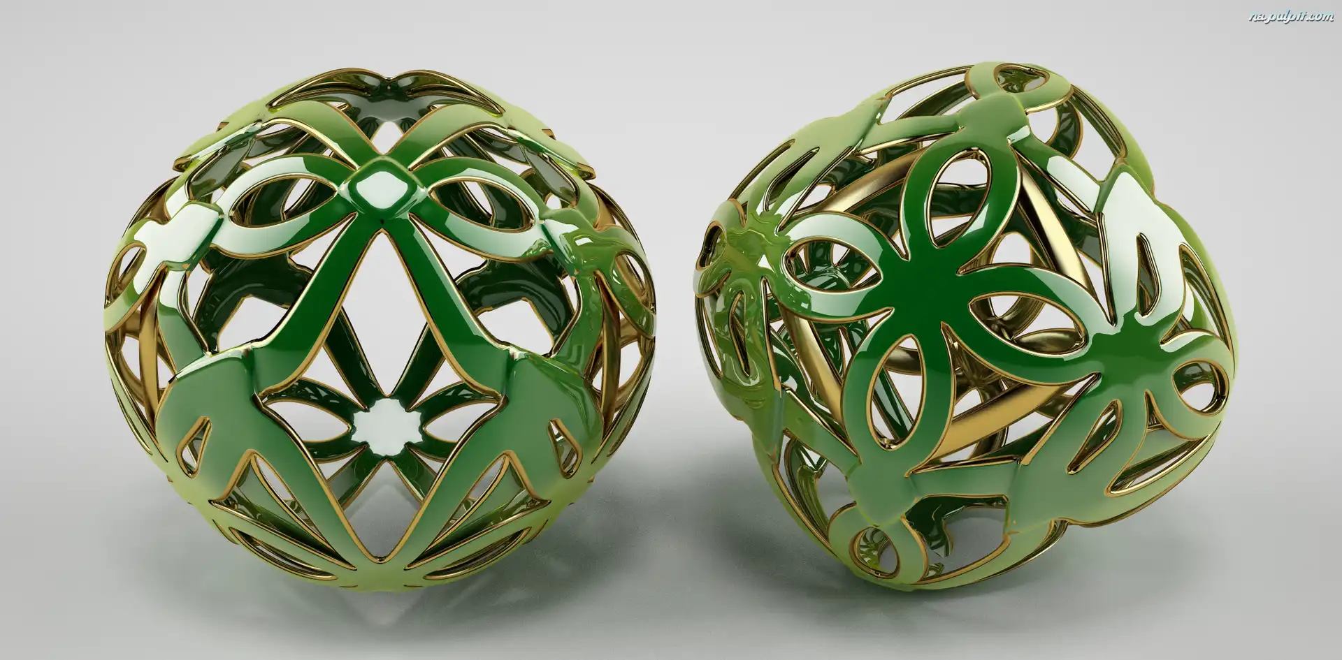 Złoty, Obiekt, Wektorowa, Grafika 3D, Zielony Na Pulpit