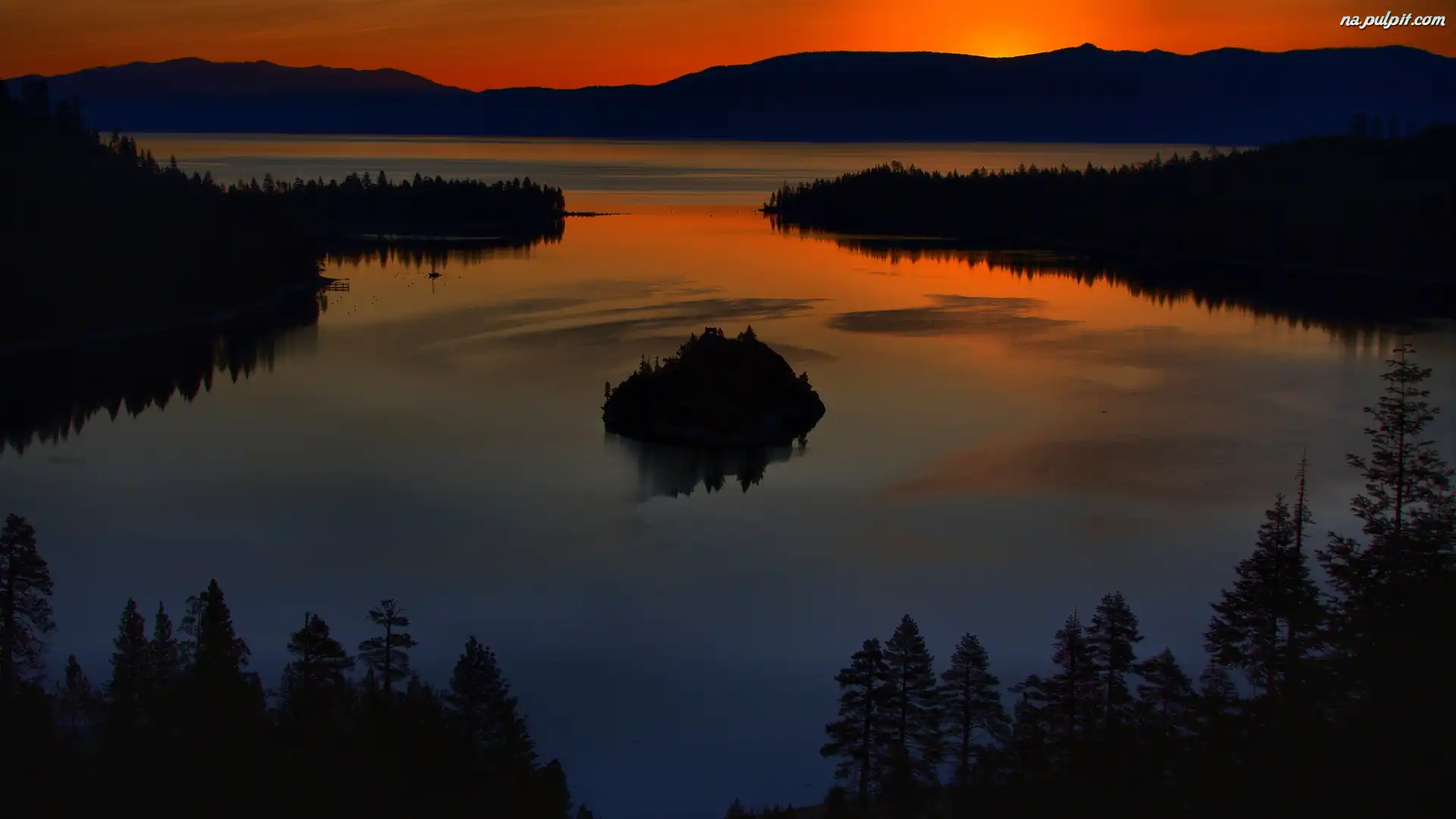 Zmierzch, Wzgórza, Drzewa, Jezioro Na Pulpit