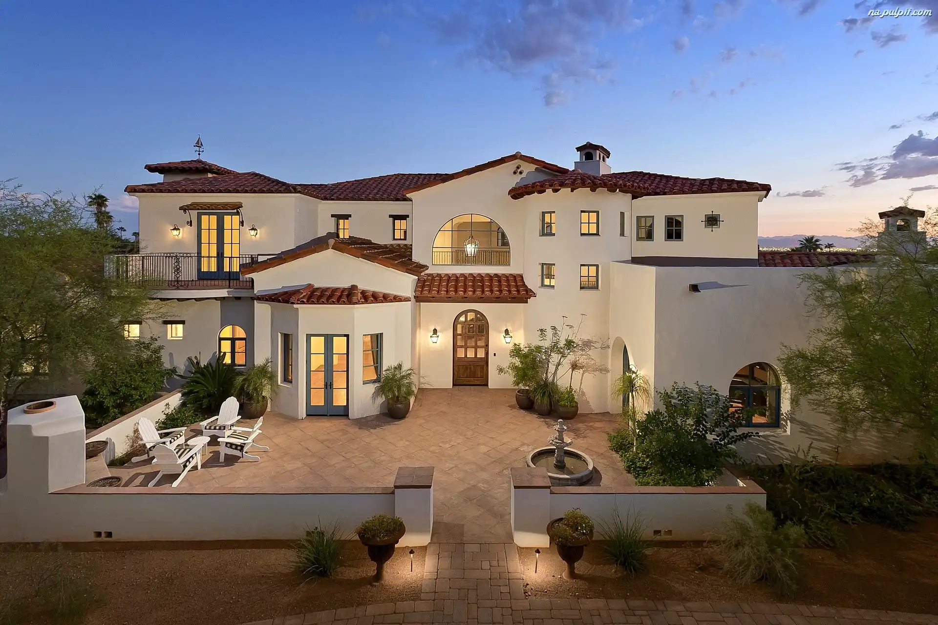 Zmierzch, Dom, Oświetlony, Willa Na Pulpit