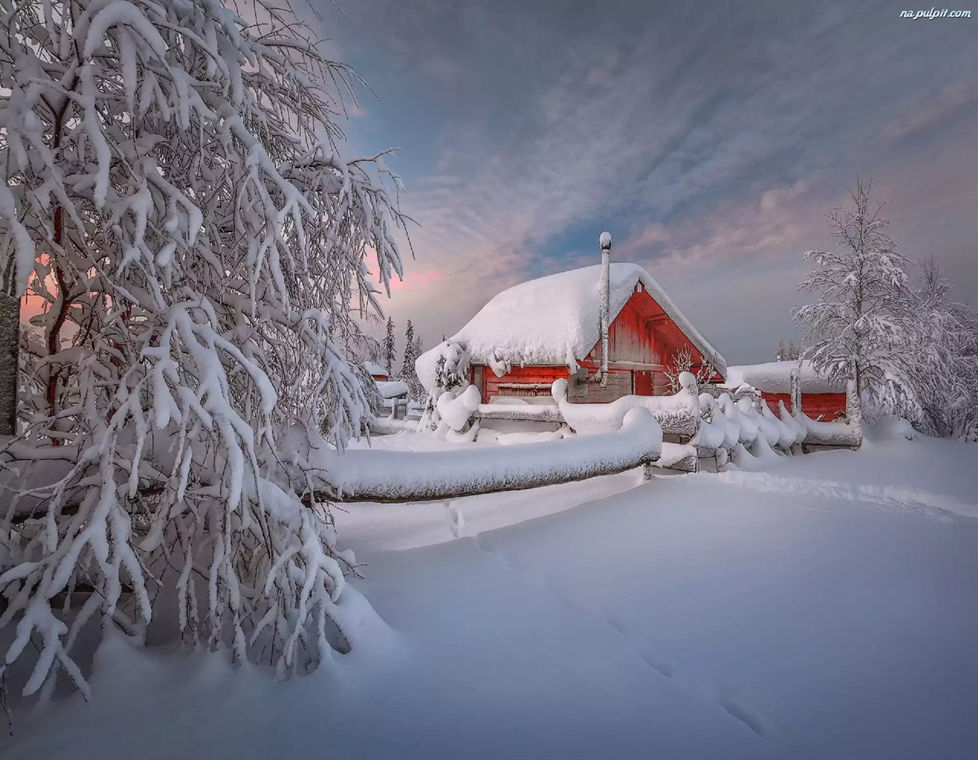 Zmierzch, Drzewa, Śnieg, Zima, Dom Na Pulpit