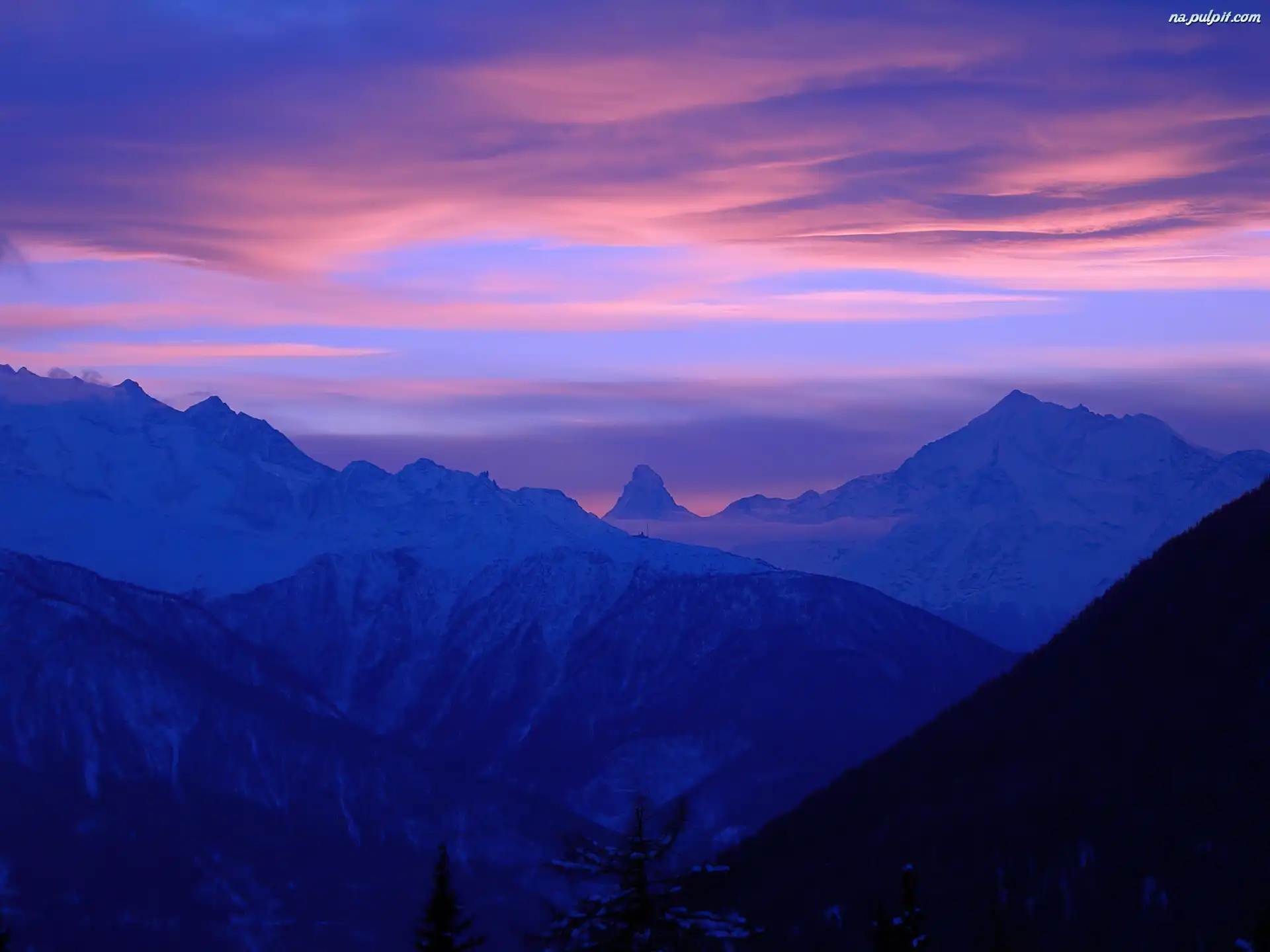 Zmrok, Góry, Zachód Słońca, Chmury Na Pulpit
