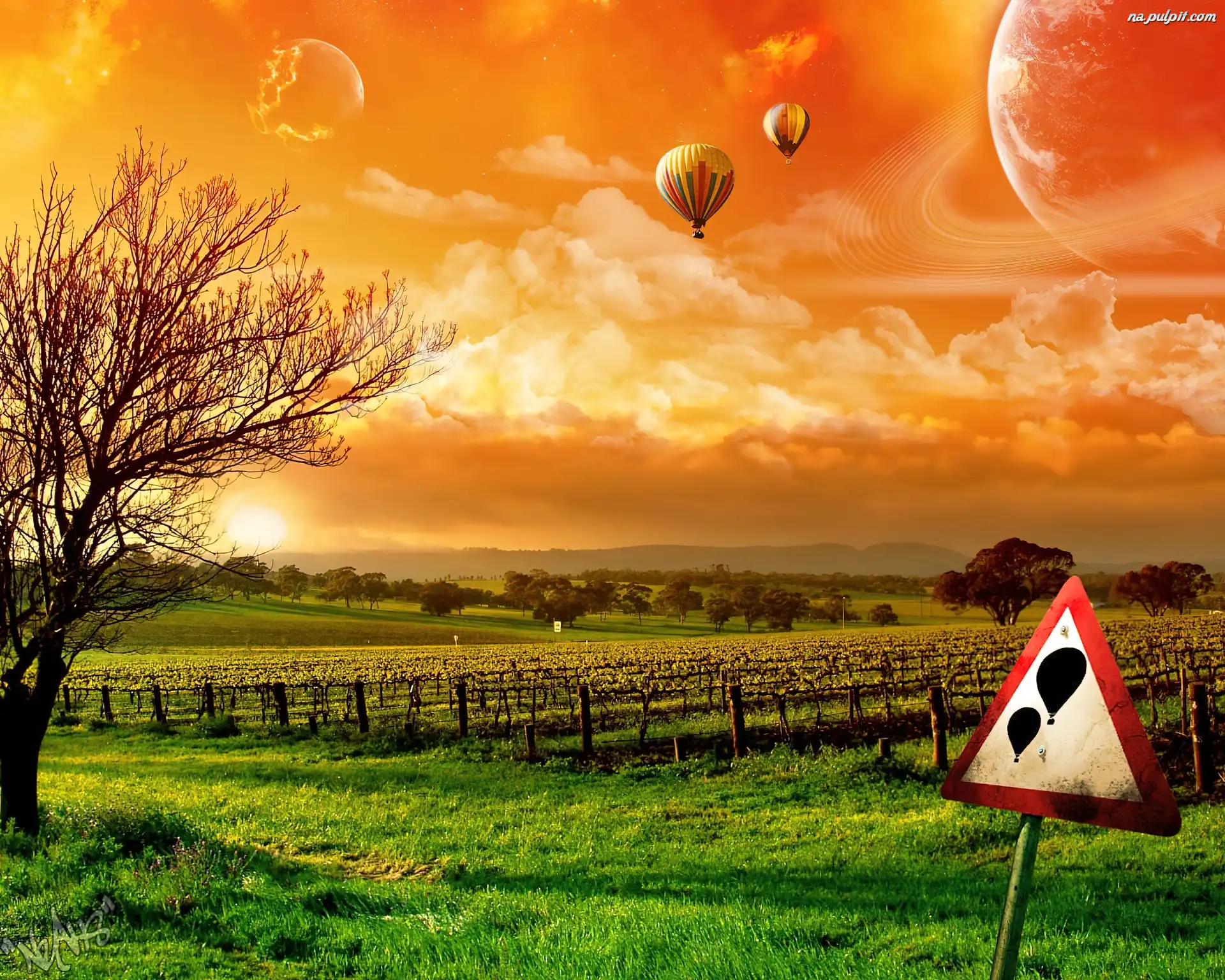 Znak, Pola, Słońca, Zachód, Balon Na Pulpit