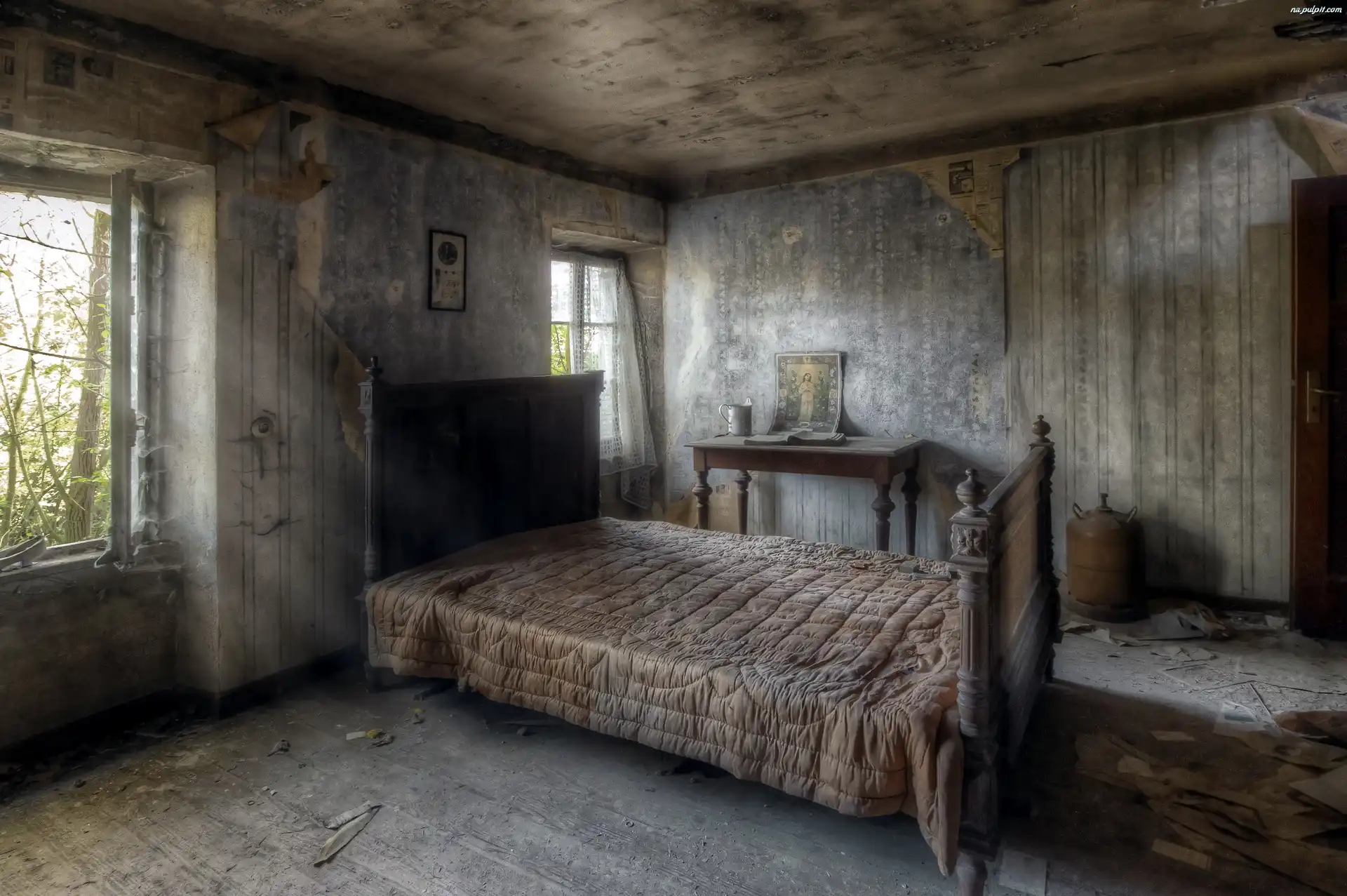 Łóżko, Stara, Zniszczona, Sypialnia
