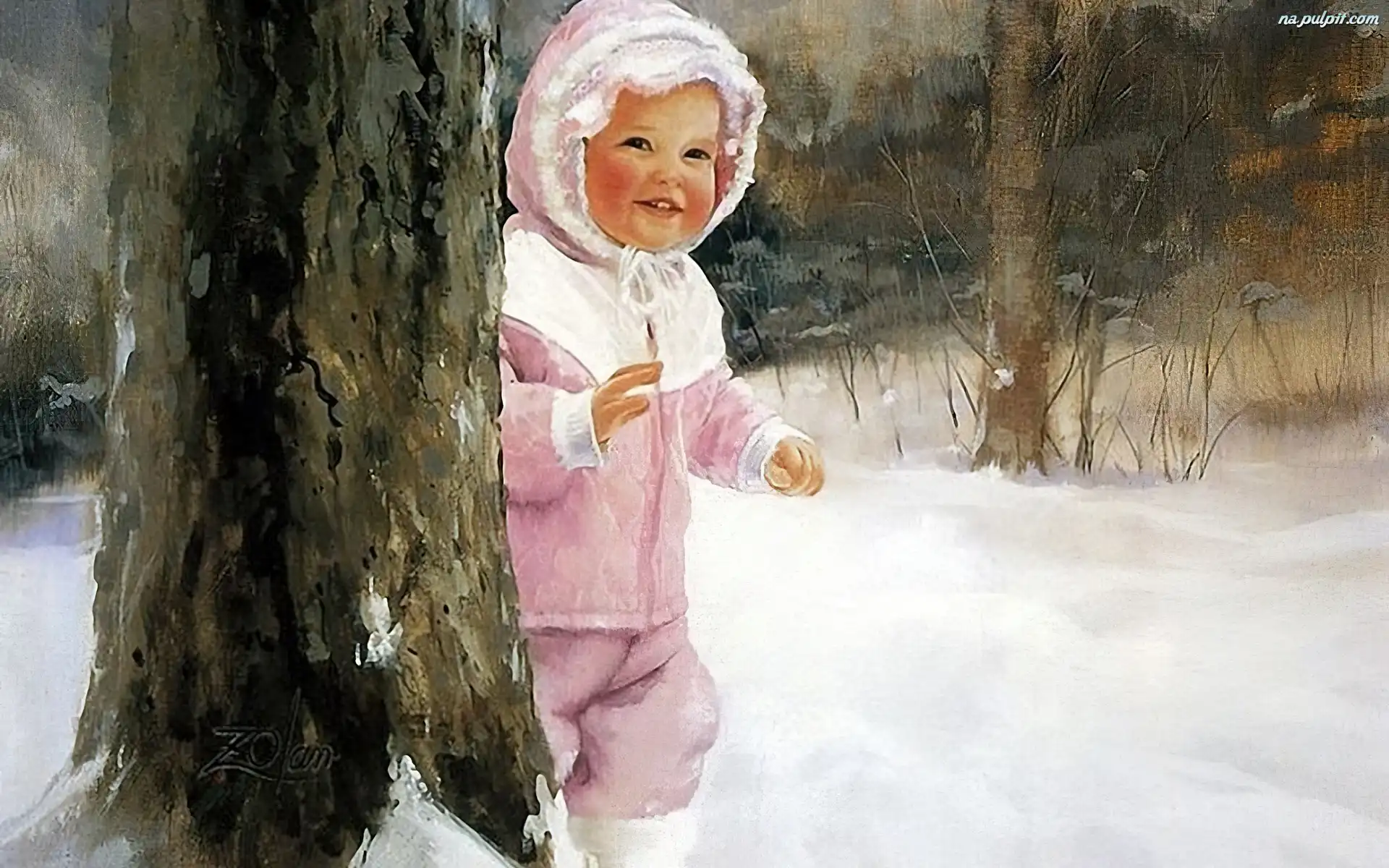 Zolan, Śnieg, Drzewo, Dziecko, Donald Na Pulpit