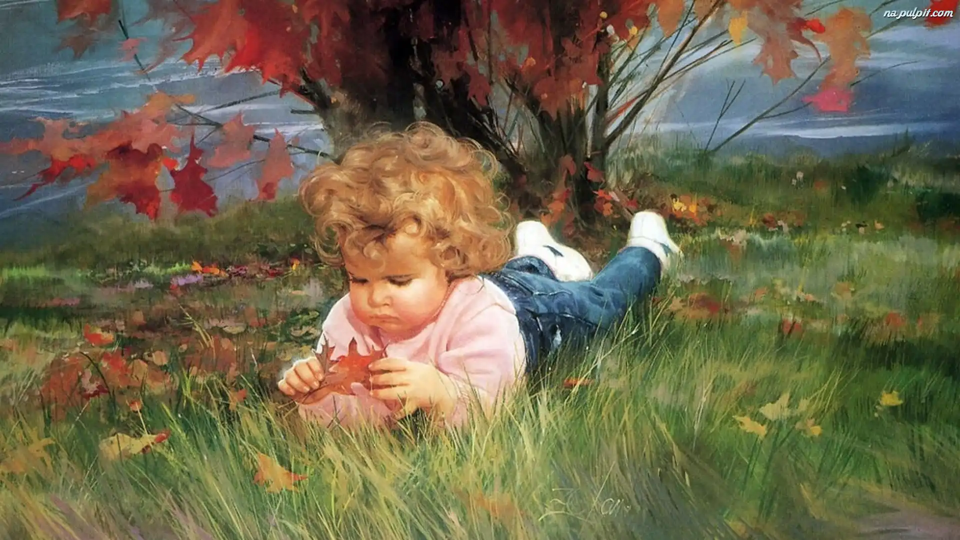 Zwierzęta, Zbiór, Sad, Dzieci, Jabłek Dona Gelsinger, Aniołki, Dziewczynki, Dwie, Króliczek Olejny, Tulipany, Żółte, Obraz Skały, Łódka, Noc, Morze, Dom, Plaża Sykstyńskiej, Freski, Michał Anioł, Kaplicy Dziecko błazen Fantasy, Helene Beland, Art Niemowlaki przed kompem Obraz, Morze, Burza, Fale Piotr Cieśliński, Renegat Halloween, Dzieciaki w dyniach Kwiaty, Olejny, Obraz, Zatoka Donald Zolan, Rodzeństwo, Spacer Bob Roos, Morze, Noc, Księżyc