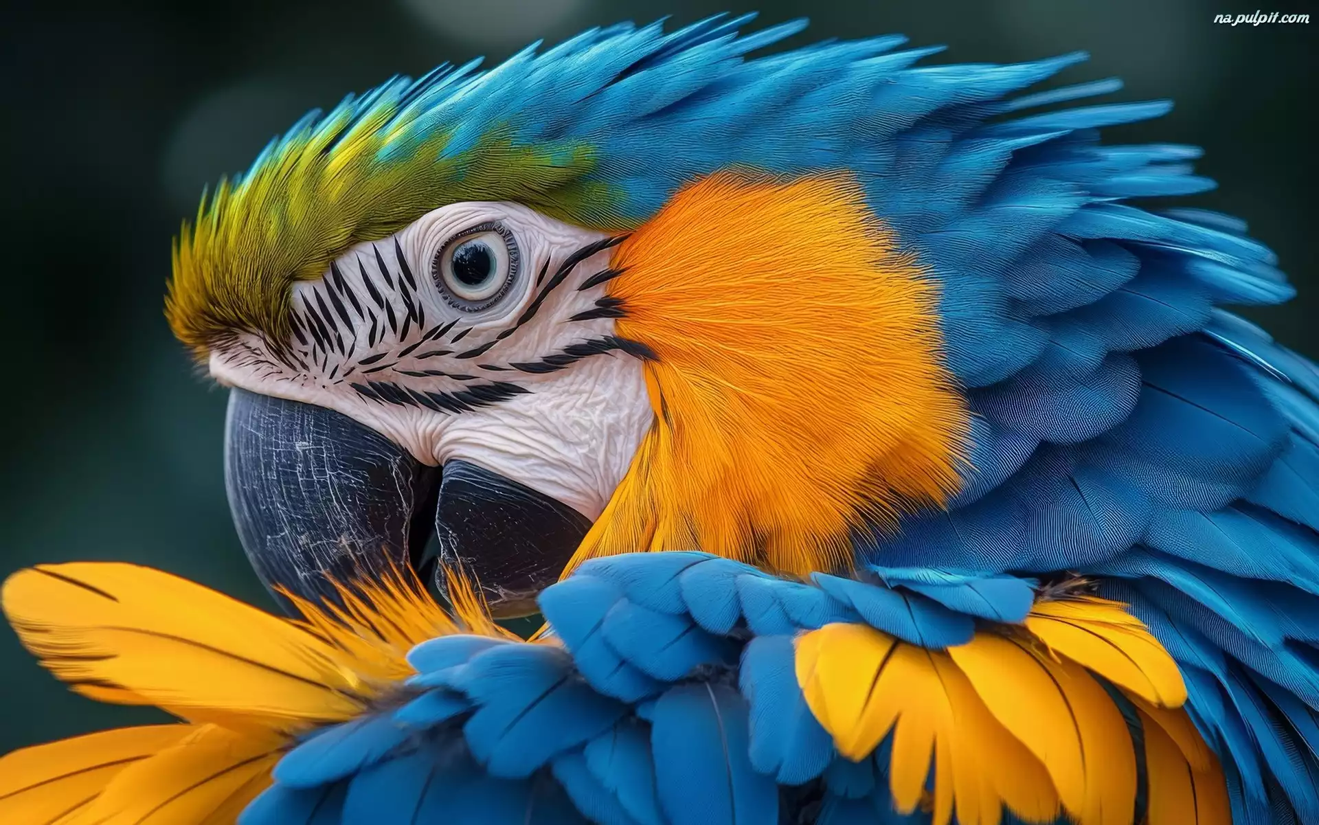 Niebiesko-żółta, Papuga, Ara, Głowa Na Pulpit