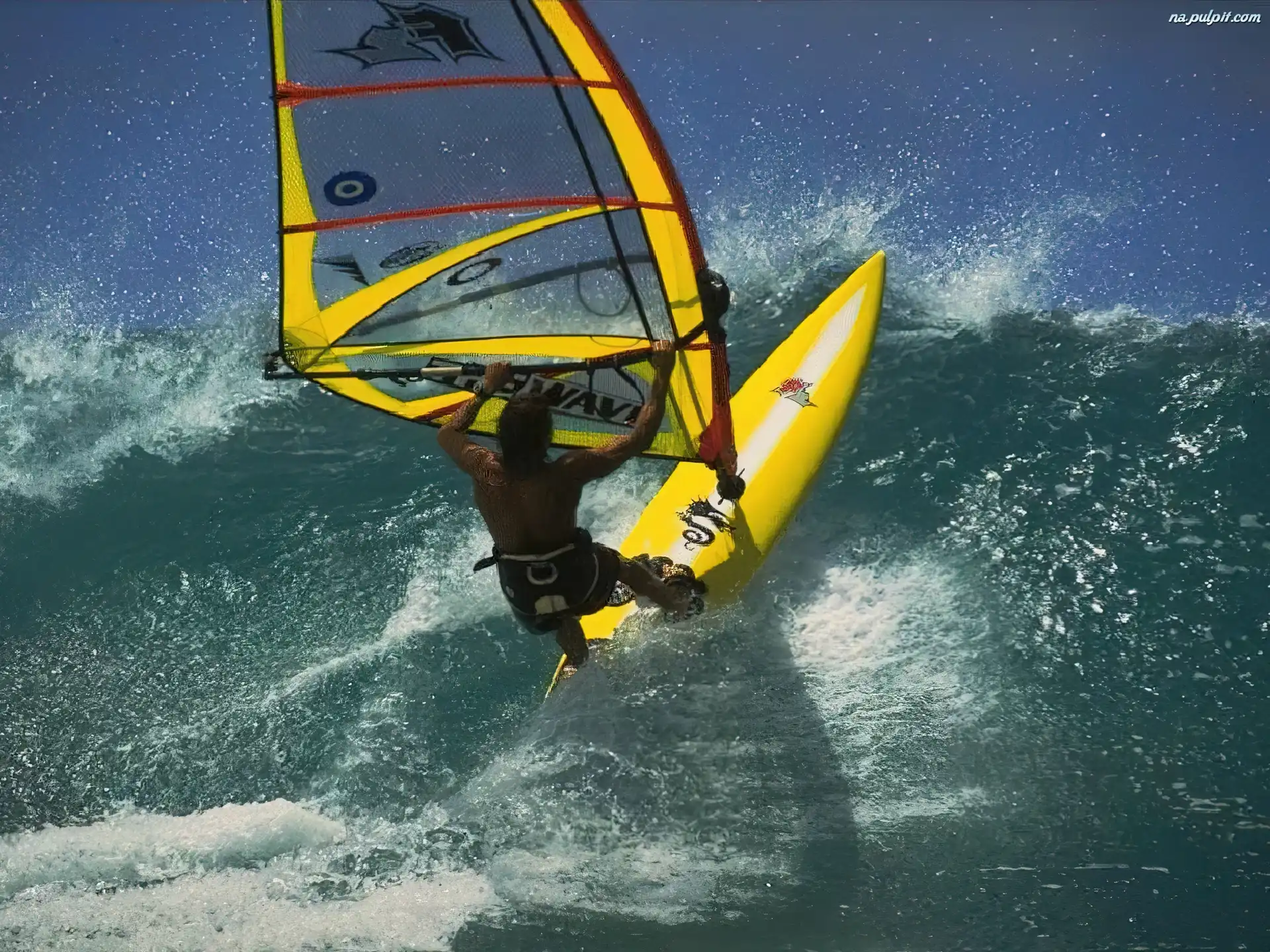Windsurfing, żółta deska Na Pulpit