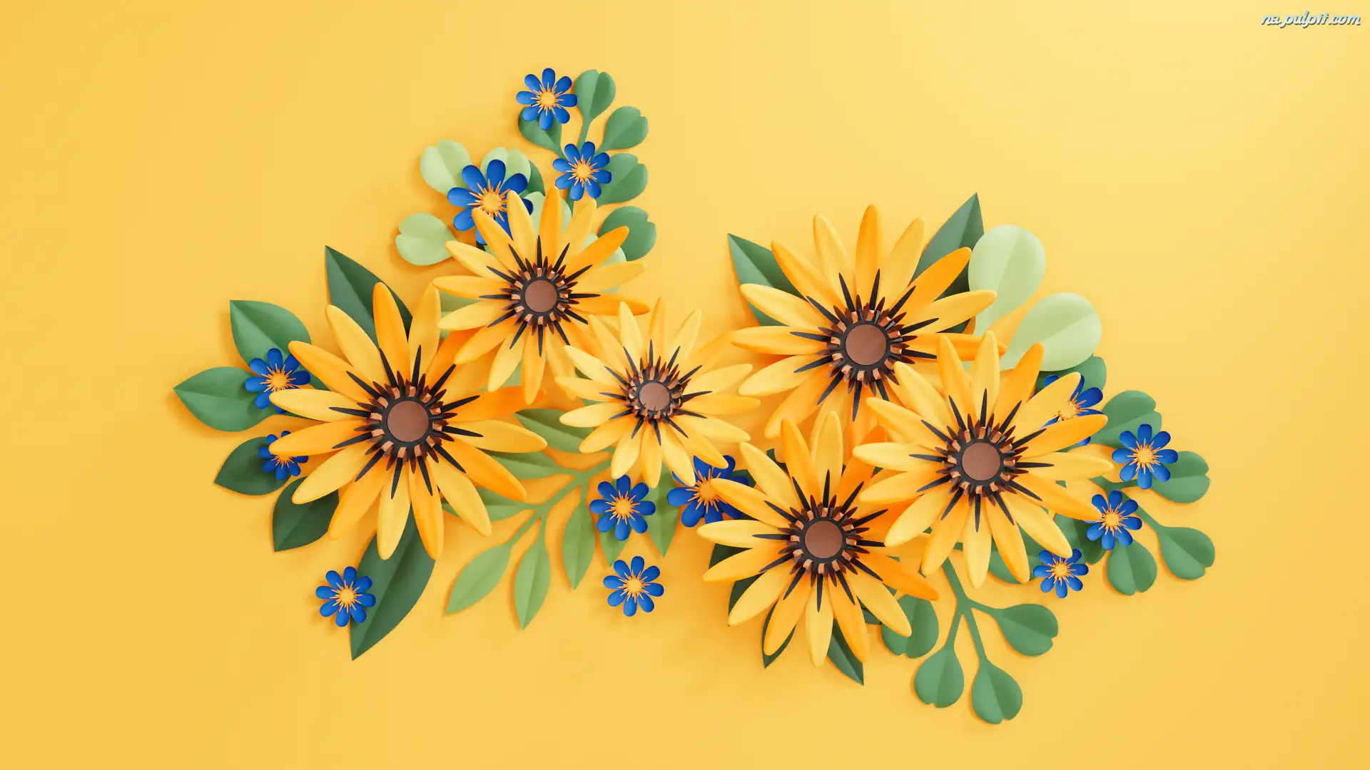 Tło, Kwiaty, Liście, Żółte, Kolorowe, Grafika Na Pulpit