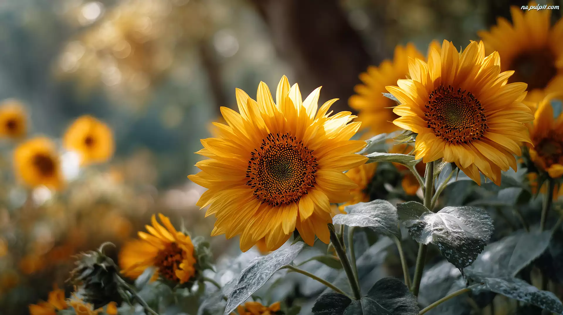 Słoneczniki, Żółte, Kwiaty, Grafika AI Na Pulpit