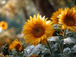 Słoneczniki, Żółte, Kwiaty, Grafika AI