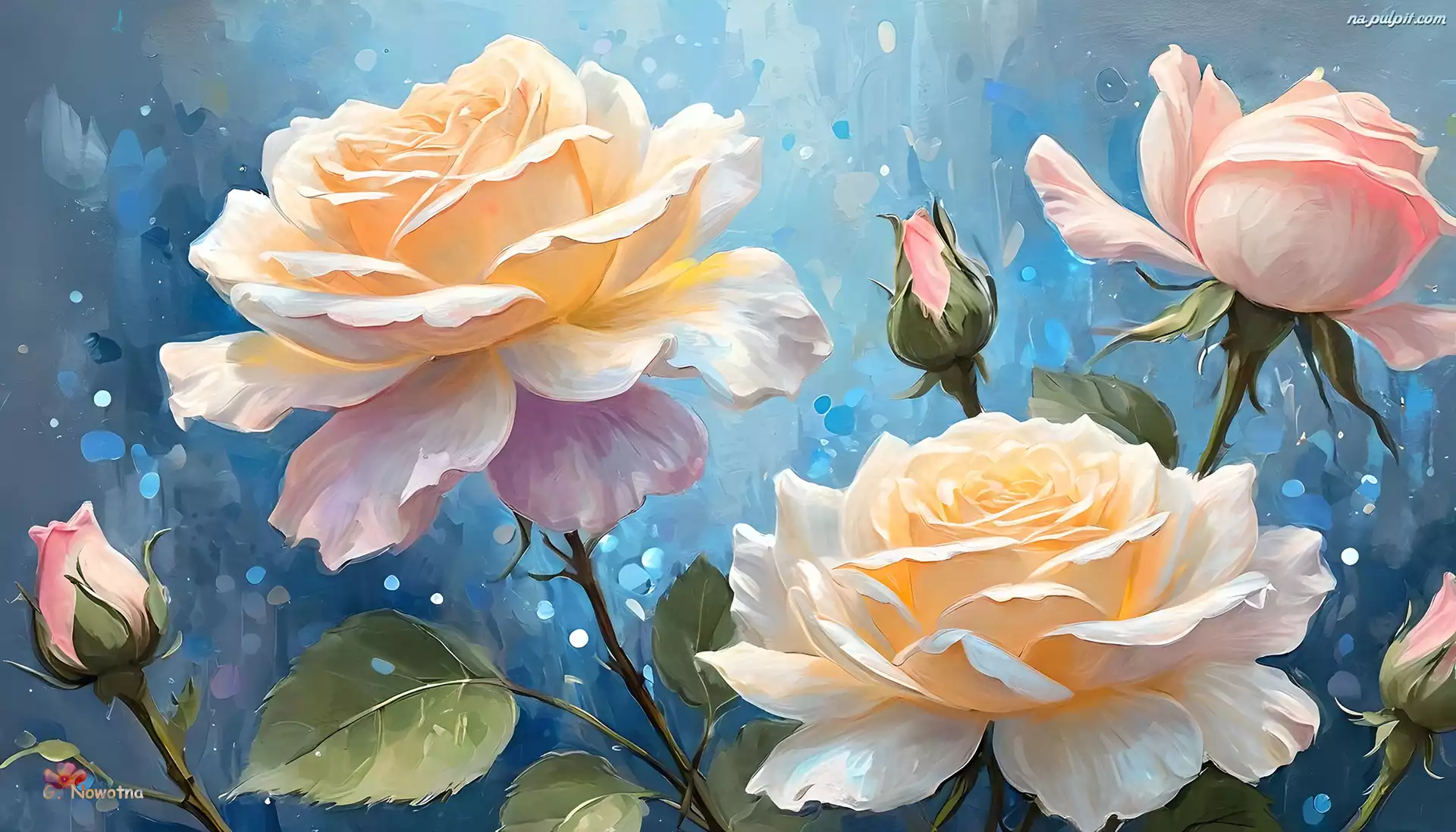 Pąki, Żółte, Róże, Grafika, Kwiaty