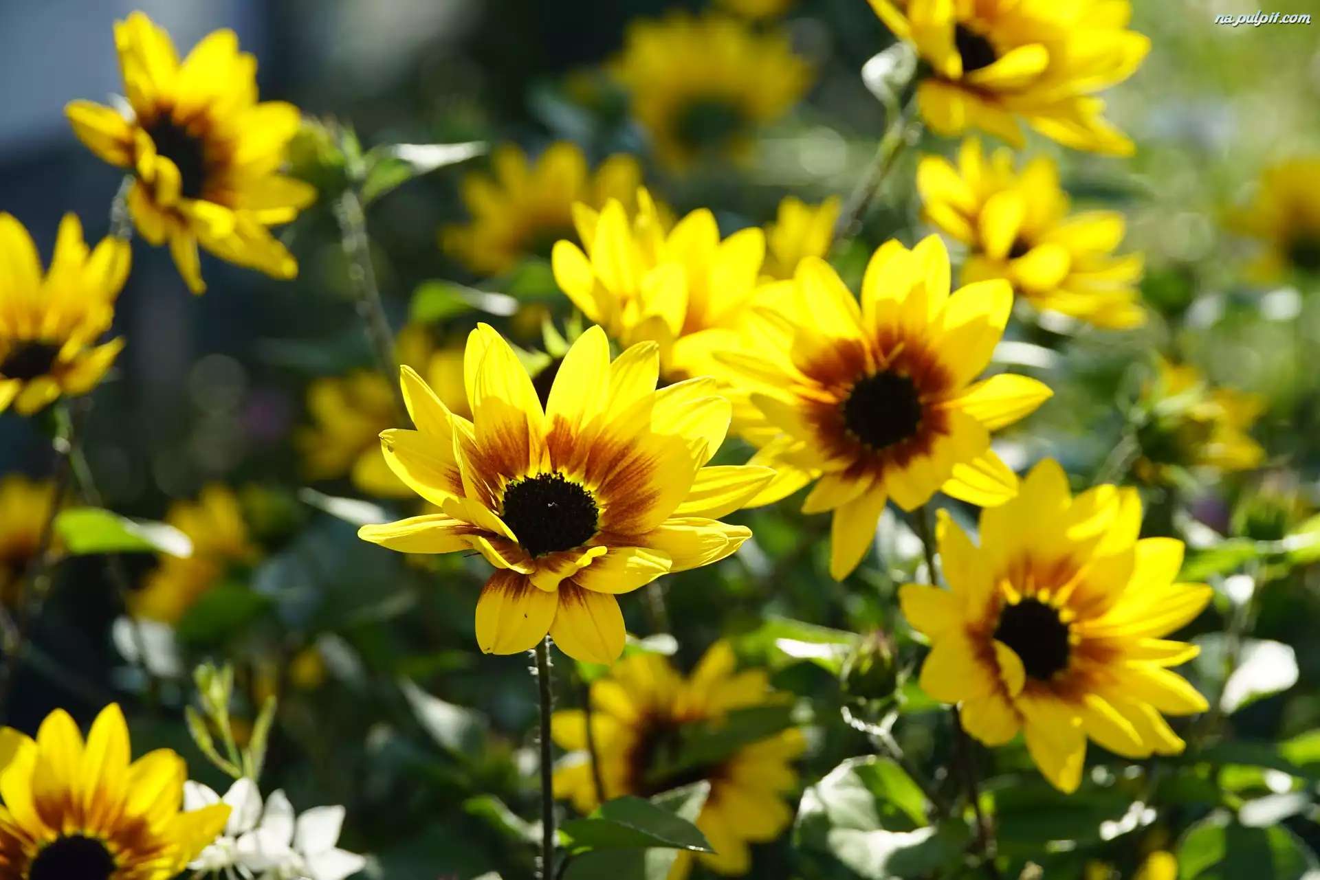Żółte, Kwiaty, Rozświetlone Na Pulpit