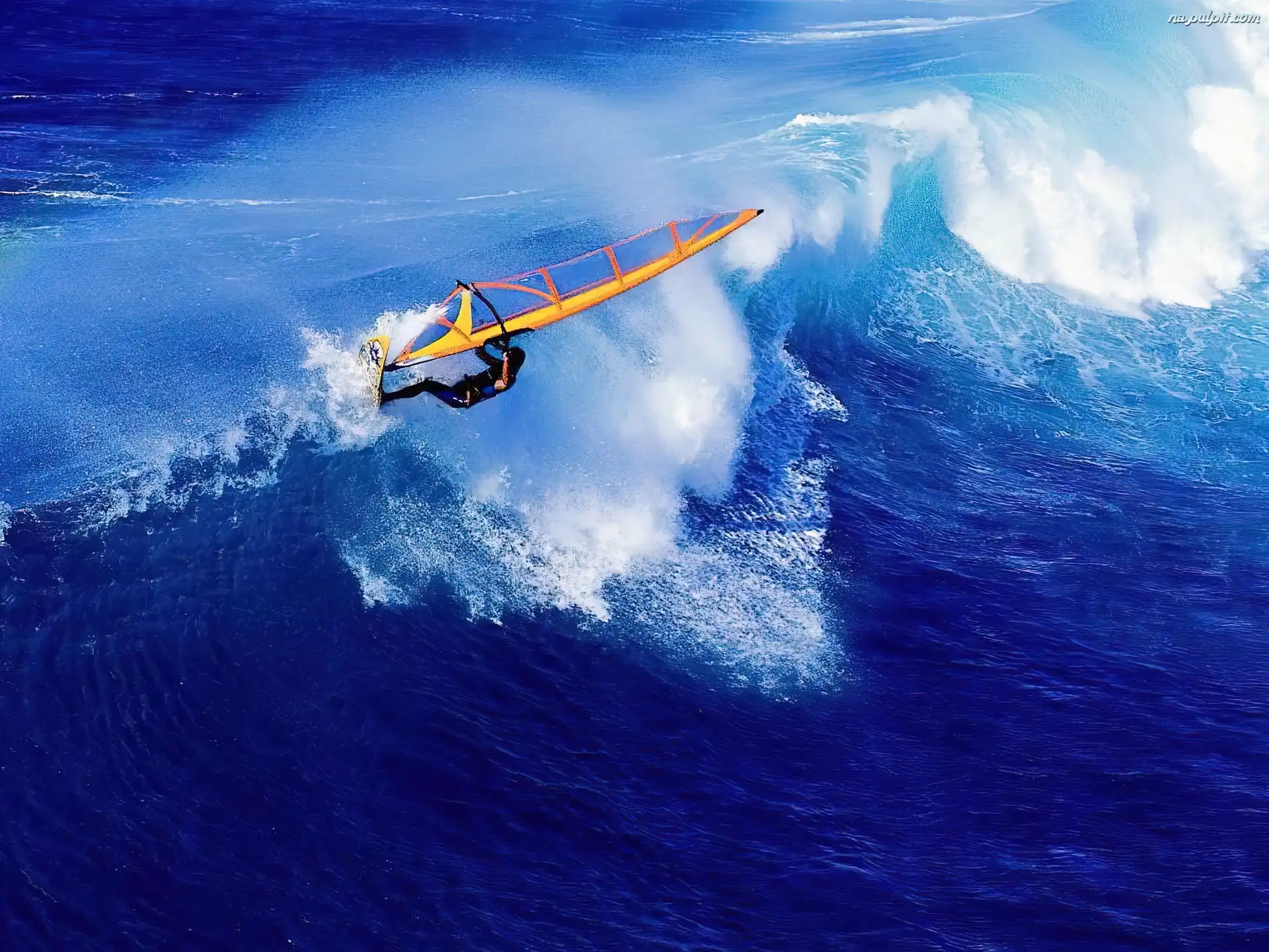 Windsurfing, żółty żagiel Na Pulpit