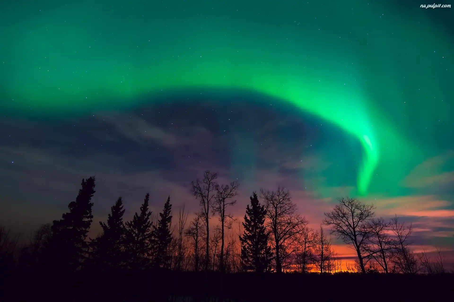 Drzewa, Zorza, Polarna Na Pulpit