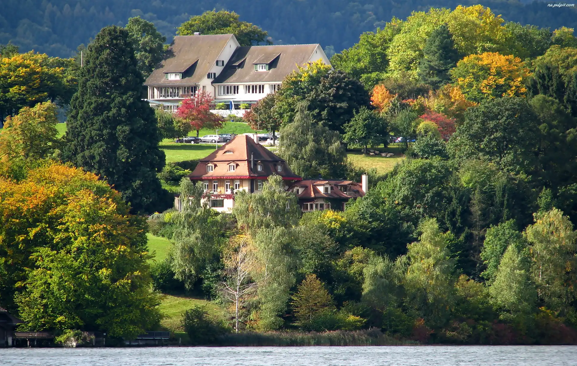 Zurych, Drzewa, Domy, Rzeka Na Pulpit