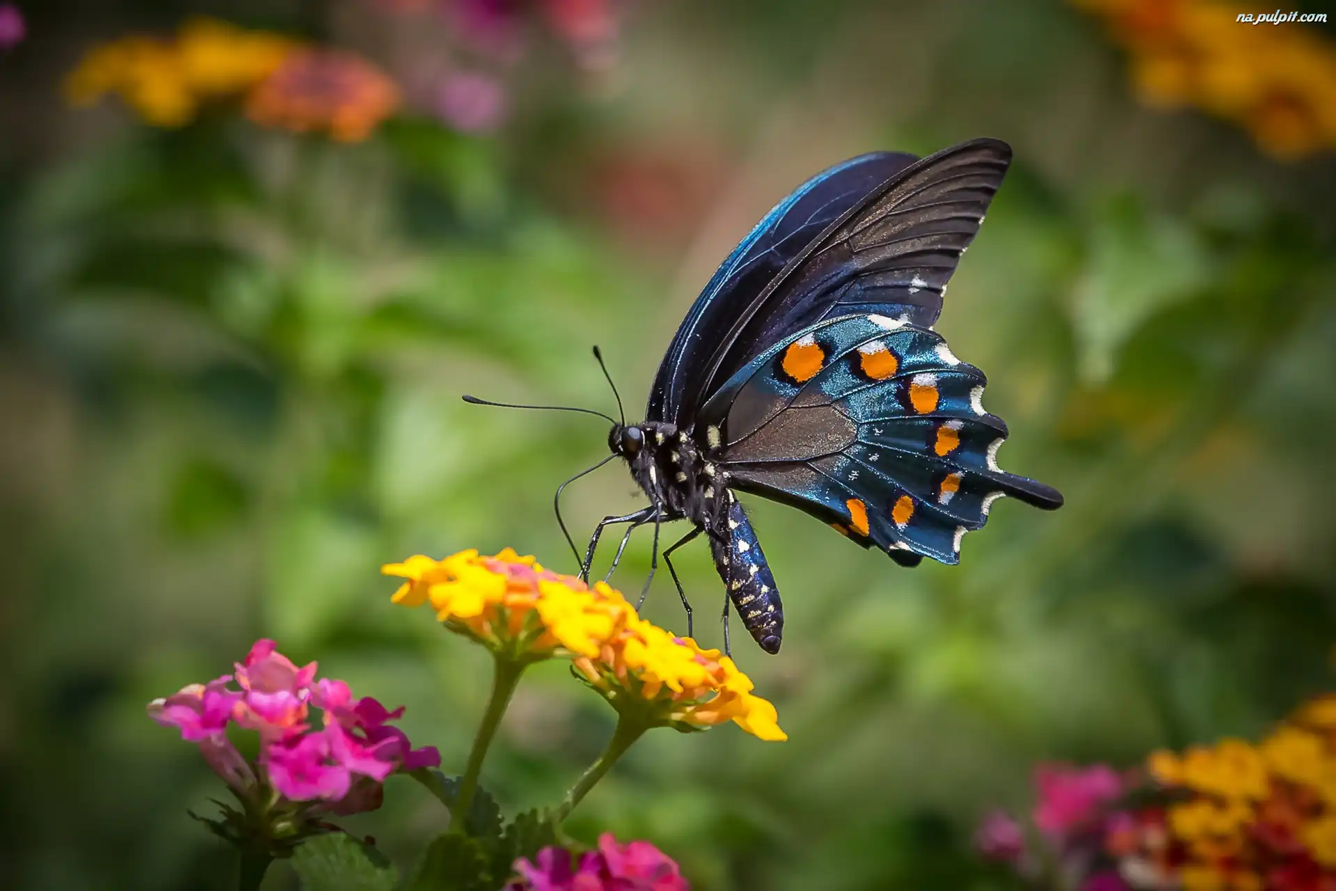Zwierzęta, Czarny paź królowej, Motyl, Kwiaty Na Pulpit