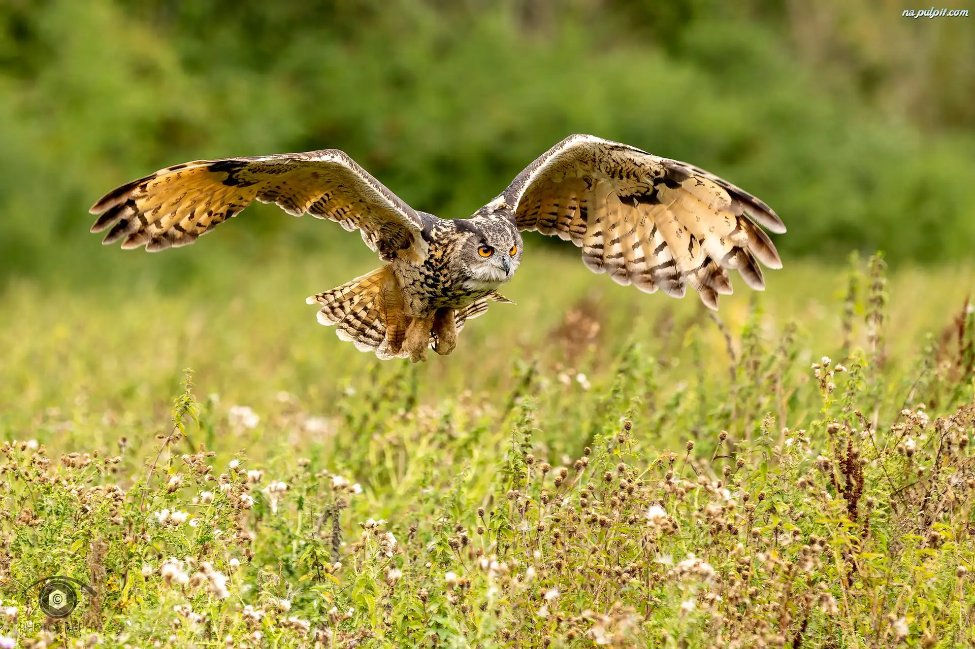 Rozpostarte, Sowa, Puchacz zwyczajny, Skrzydła, Lot Na Pulpit